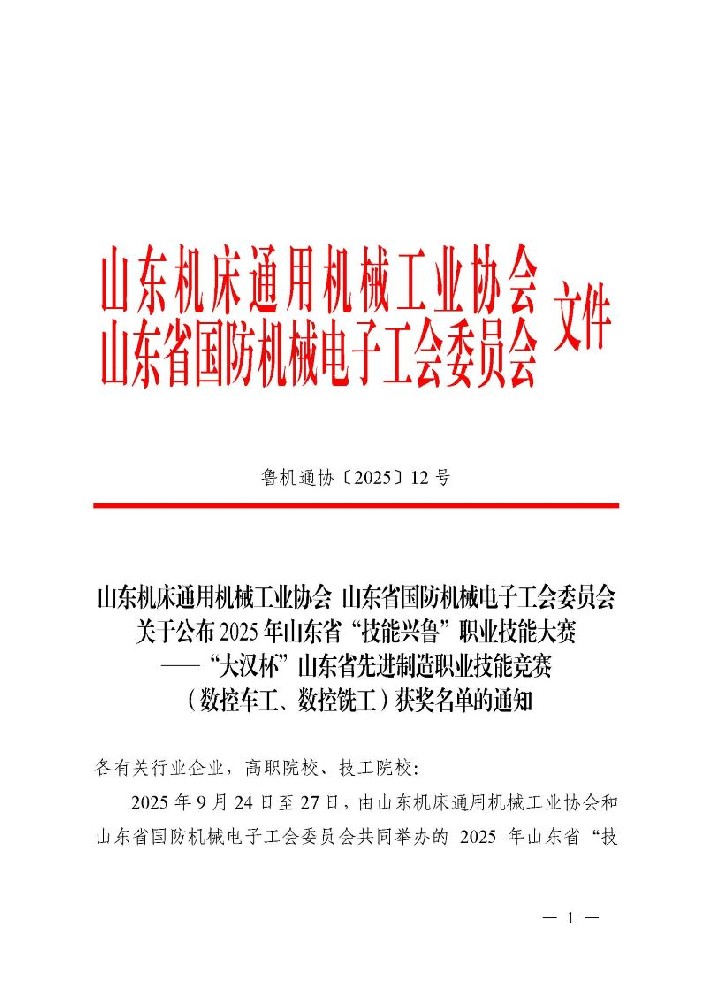 山東省先進制造職業(yè)技能競賽(數(shù)控車工、數(shù)控銑工)獲獎通知.p···…